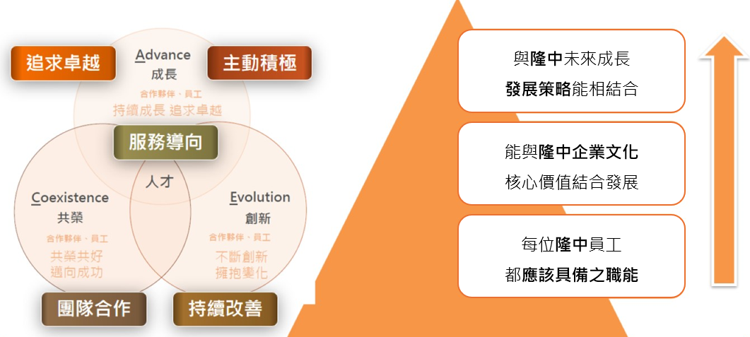 隆中導入職能系統,將其結合企業願景與文化落實永續發展,並結合訓練規劃與績效考核,透過制度落實價值。
